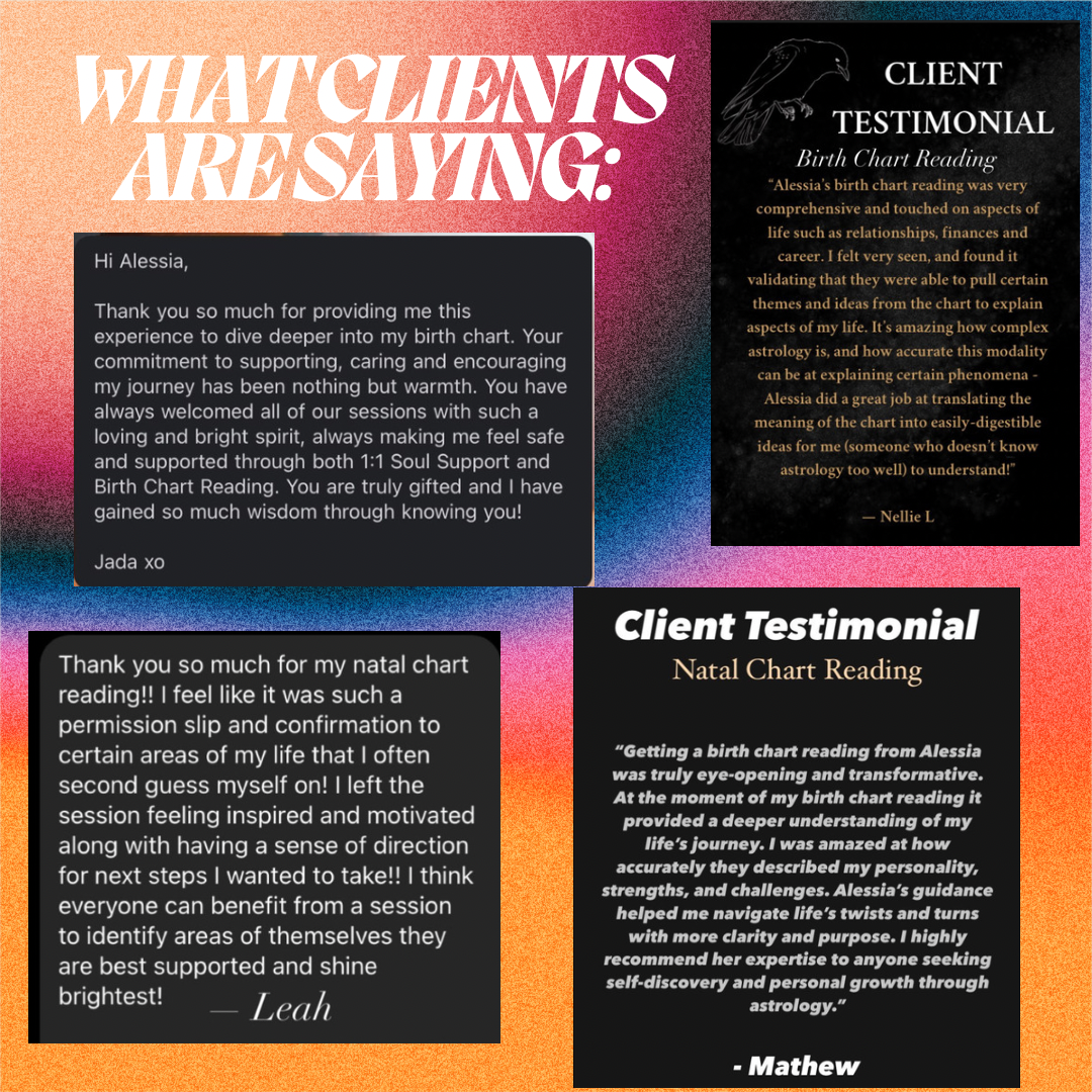 A birth chart reading with me will be an illuminating experience that empowers you to navigate life with a much deeper understanding of yourself and the cosmic energies you’re working with.